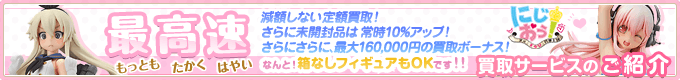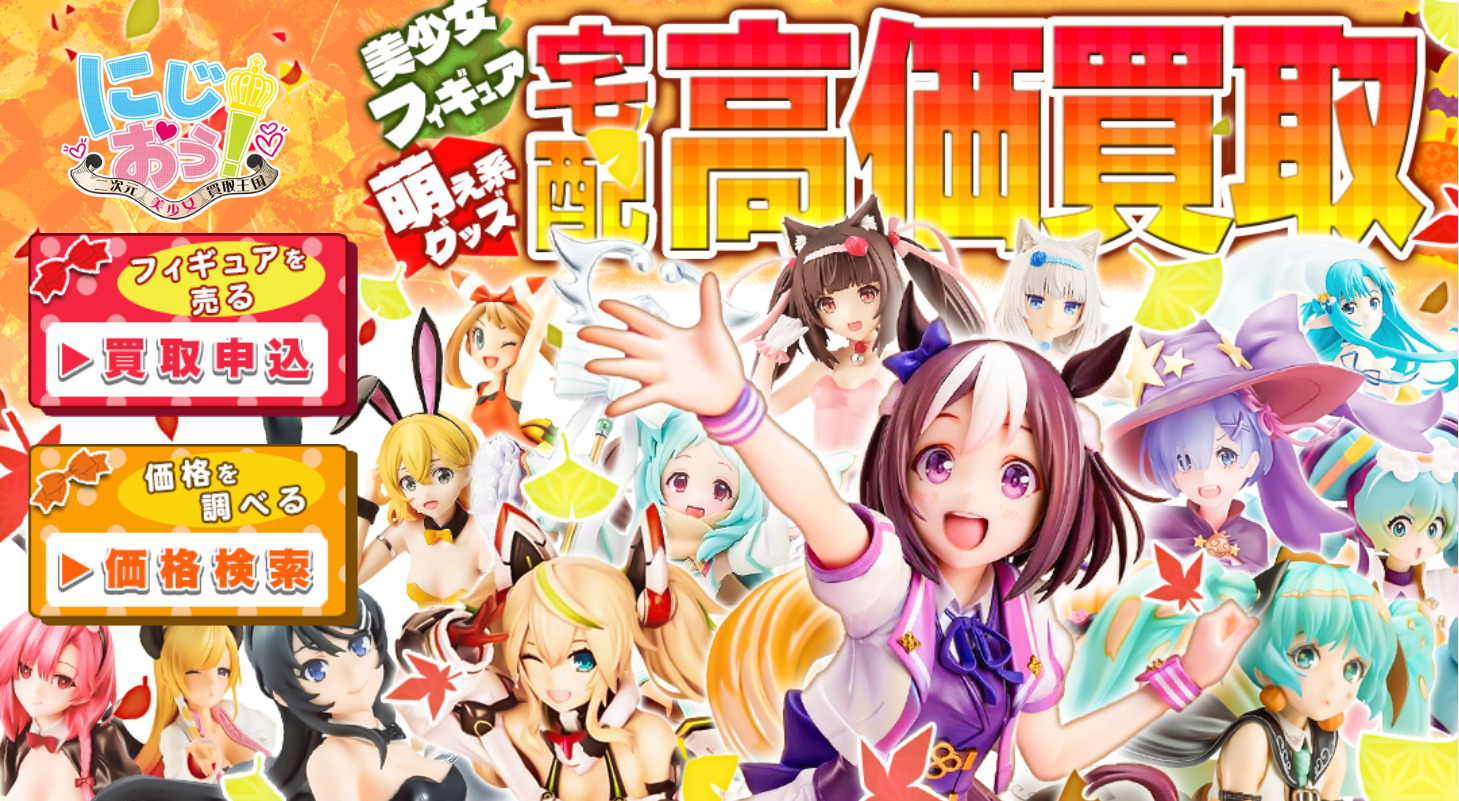 アニメグッズの買取なら2次元美少女買取王国は、市場価格や人気度に応じて査定額を決めてくれます。他社よりも高く買い取ってくれることが多いです。 商品価格表があります。その商品が手元にあるなら大チャンス! さらに 買取金額10%プラスアップ! などイベントを行っている時もあります。そのタイミングを狙いましょう!